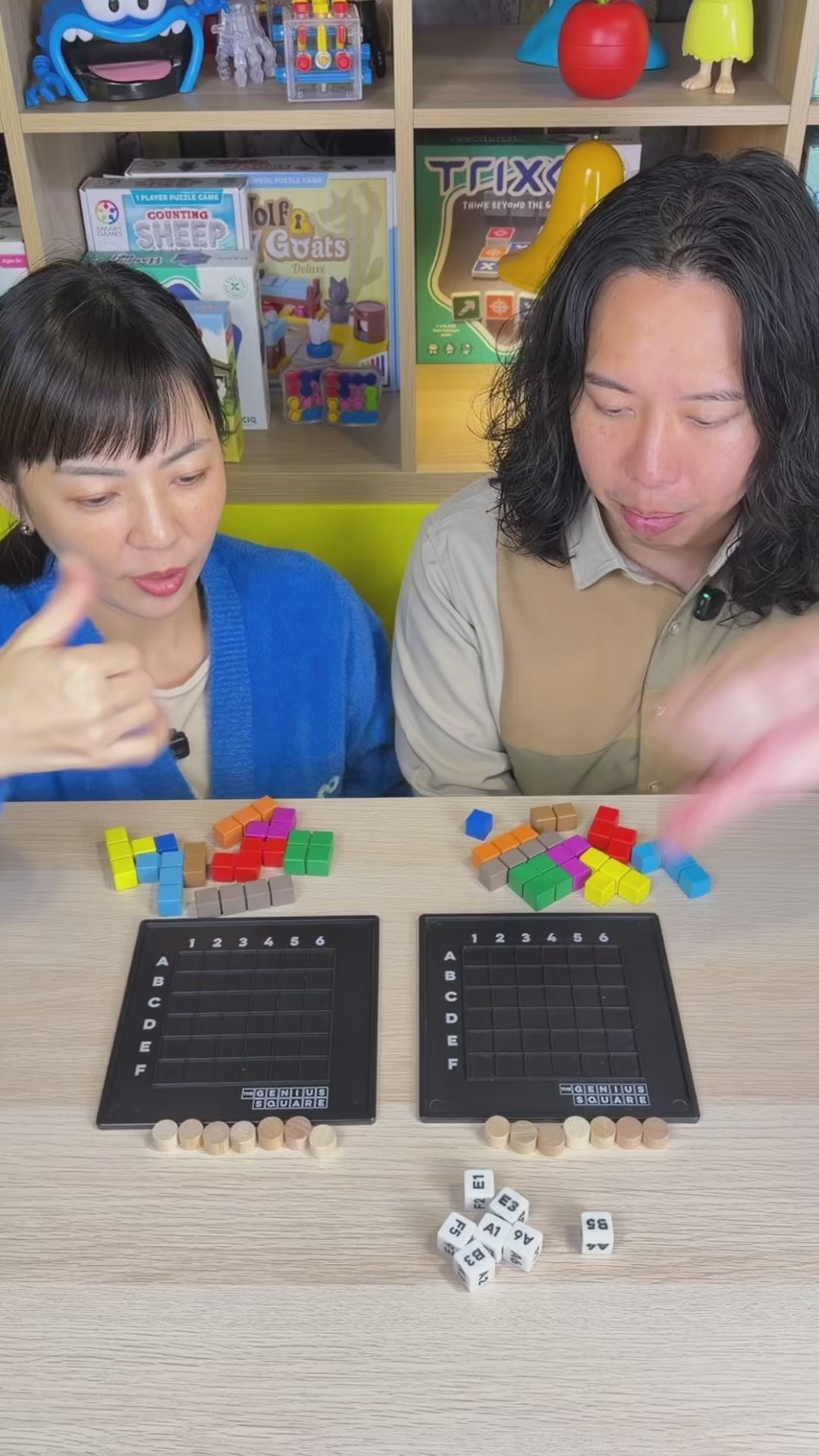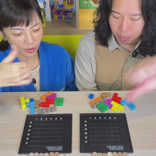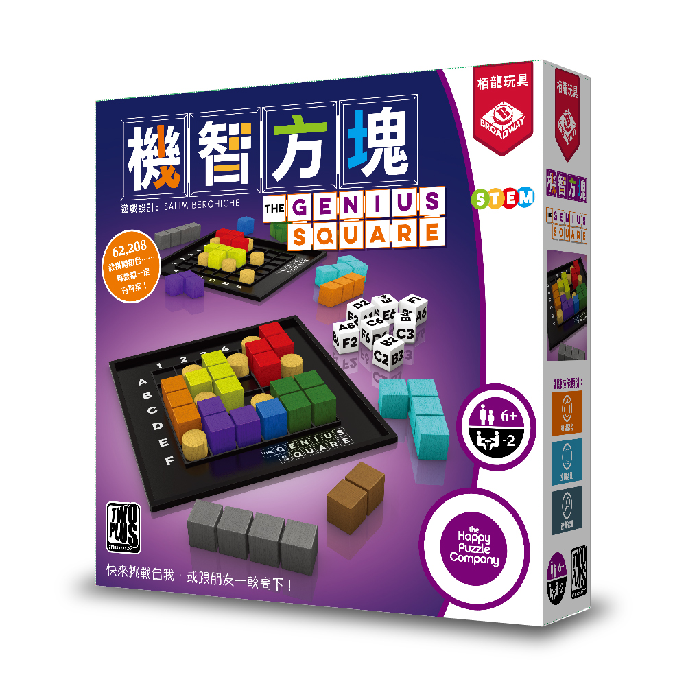 一款設法將棋盤填滿的益智遊戲。猜猜看,9種積木與7根「柱樁」,要將6x6的版圖填滿,共有幾種組合呢?答、案、是~62,208種!兩位玩家互相較勁解題速度,最先把版圖填滿者獲勝;若發現試來試去總是找不出解答,遊戲的作者誇下海口保證:「最少會有一個答案。」